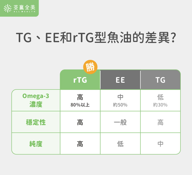 以下表格整理了 TG、EE 與 rTG 型魚油的差異: