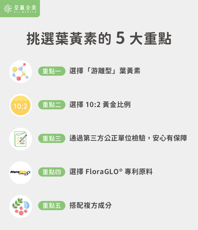 挑選葉黃素不用盲目跟風,而是要注意劑型、比例、原料和附加成分這幾個重點。掌握這些重點,補充的葉黃素才能被身體充分運用,維持健康與晶亮活力。