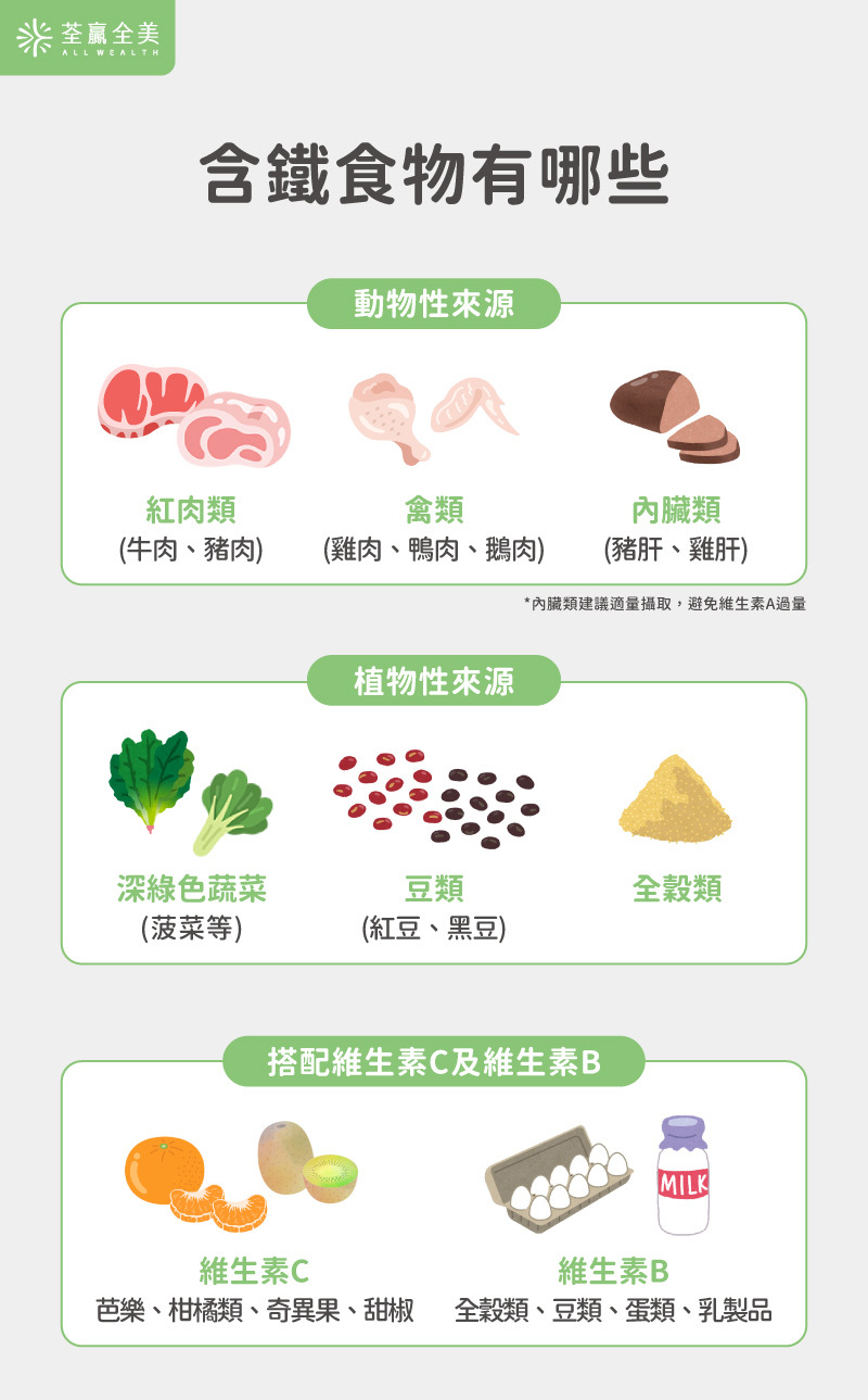 日常飲食中,鐵質來源可分為動物性與植物性兩類,兩者的利用效率有所不同: