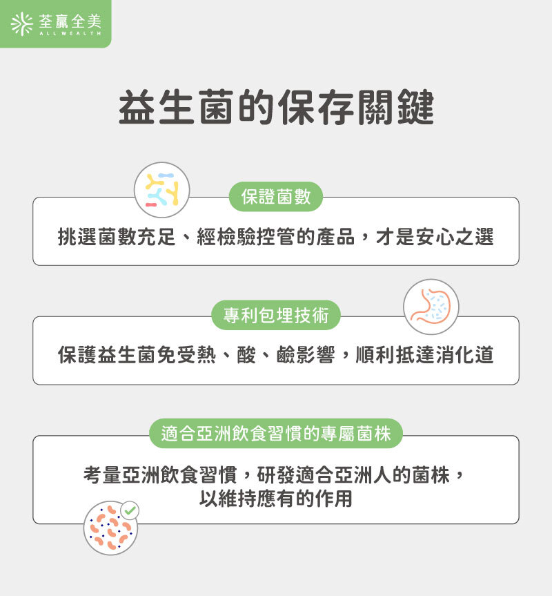 掌握以上三大重點,選對產品、保存得宜,就能確保益生菌維持穩定活性,才能被身體充分運用。