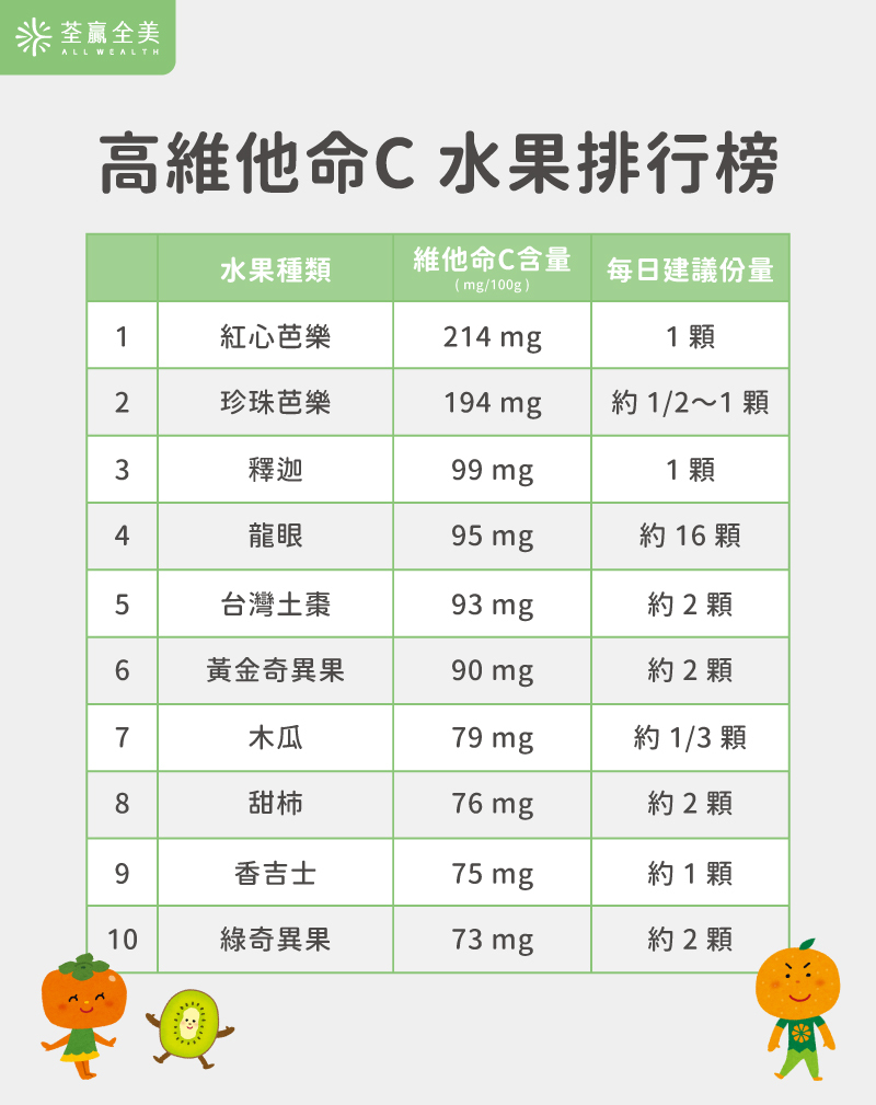 高維他命C水果排行榜