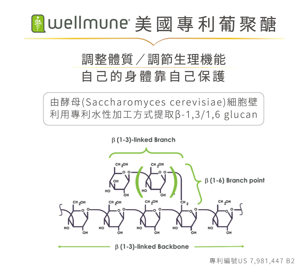 ⦁ 美國專利Wellmune® β-葡聚醣,兩包足量250mg