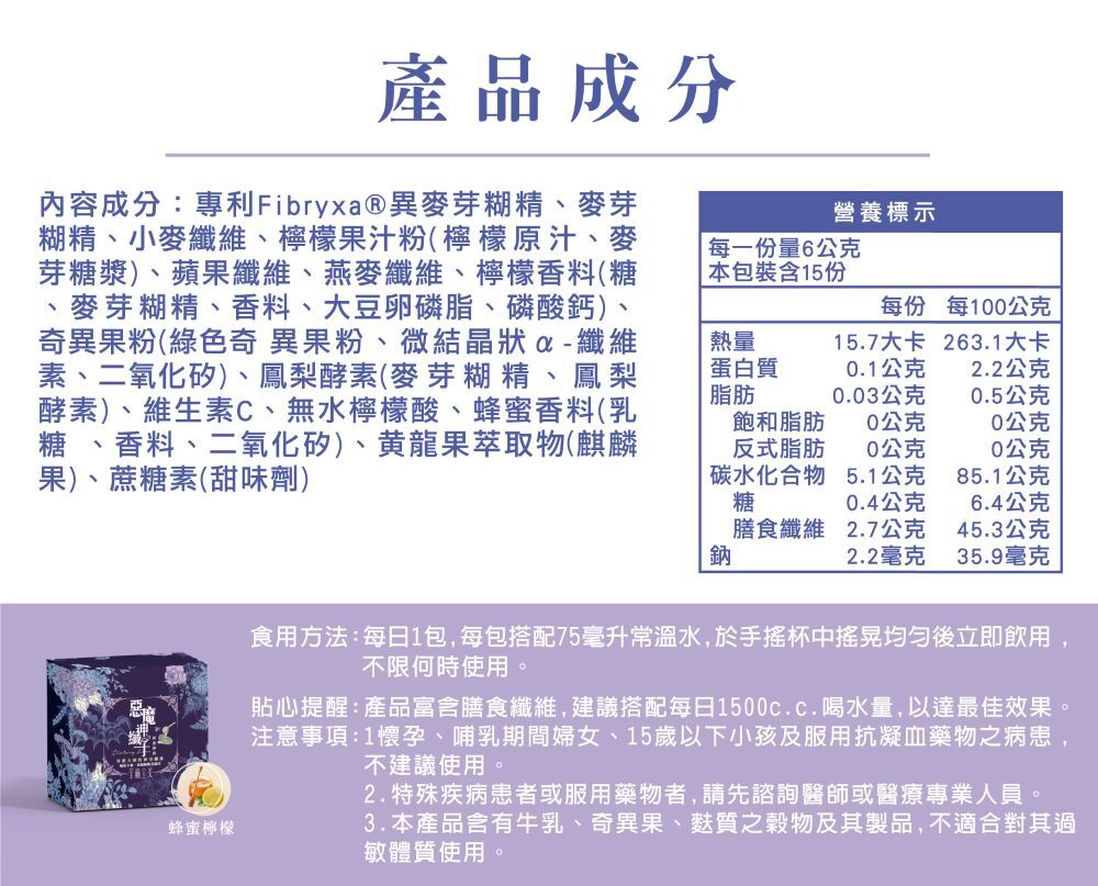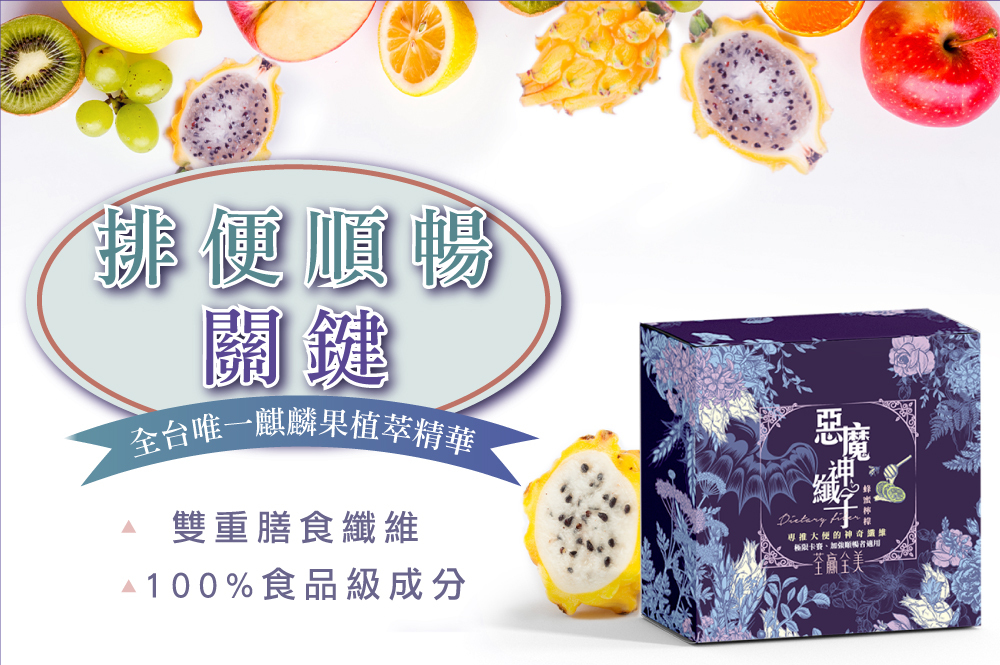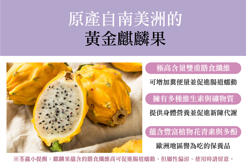 ⦁ 全台獨家!黃金麒麟果植萃,富含雙重膳食纖維