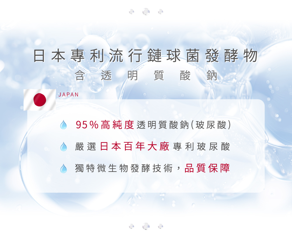 ⦁ 日本專利流行鏈球菌發酵物,95%高純度玻尿酸