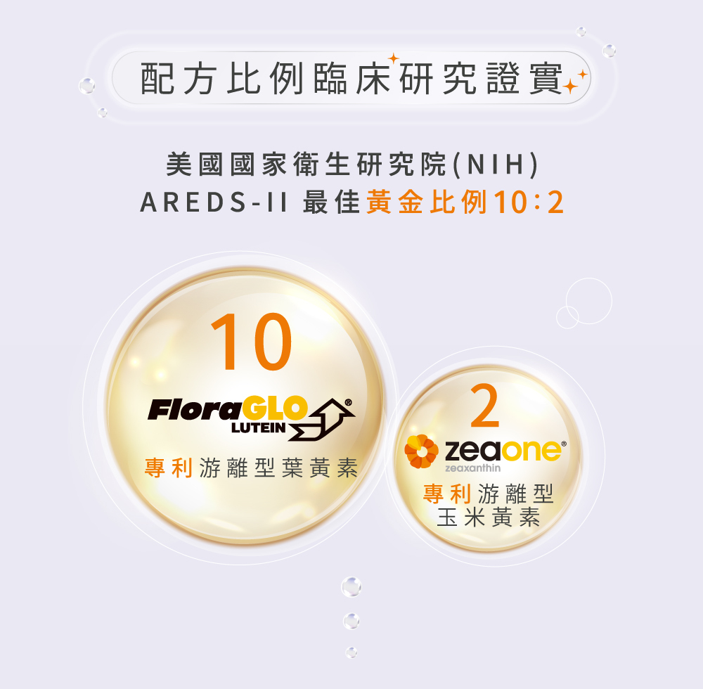 ⦁ 採用美國研究AREDS-II 黃金比例10 : 2
