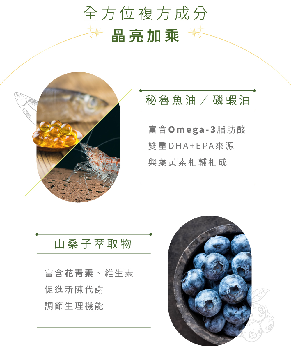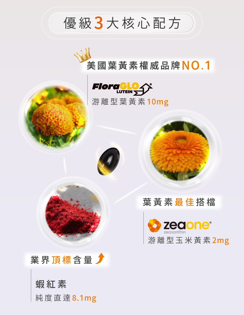 與葉黃素和玉米黃素一起補充,能夠讓晶亮保養更加分!