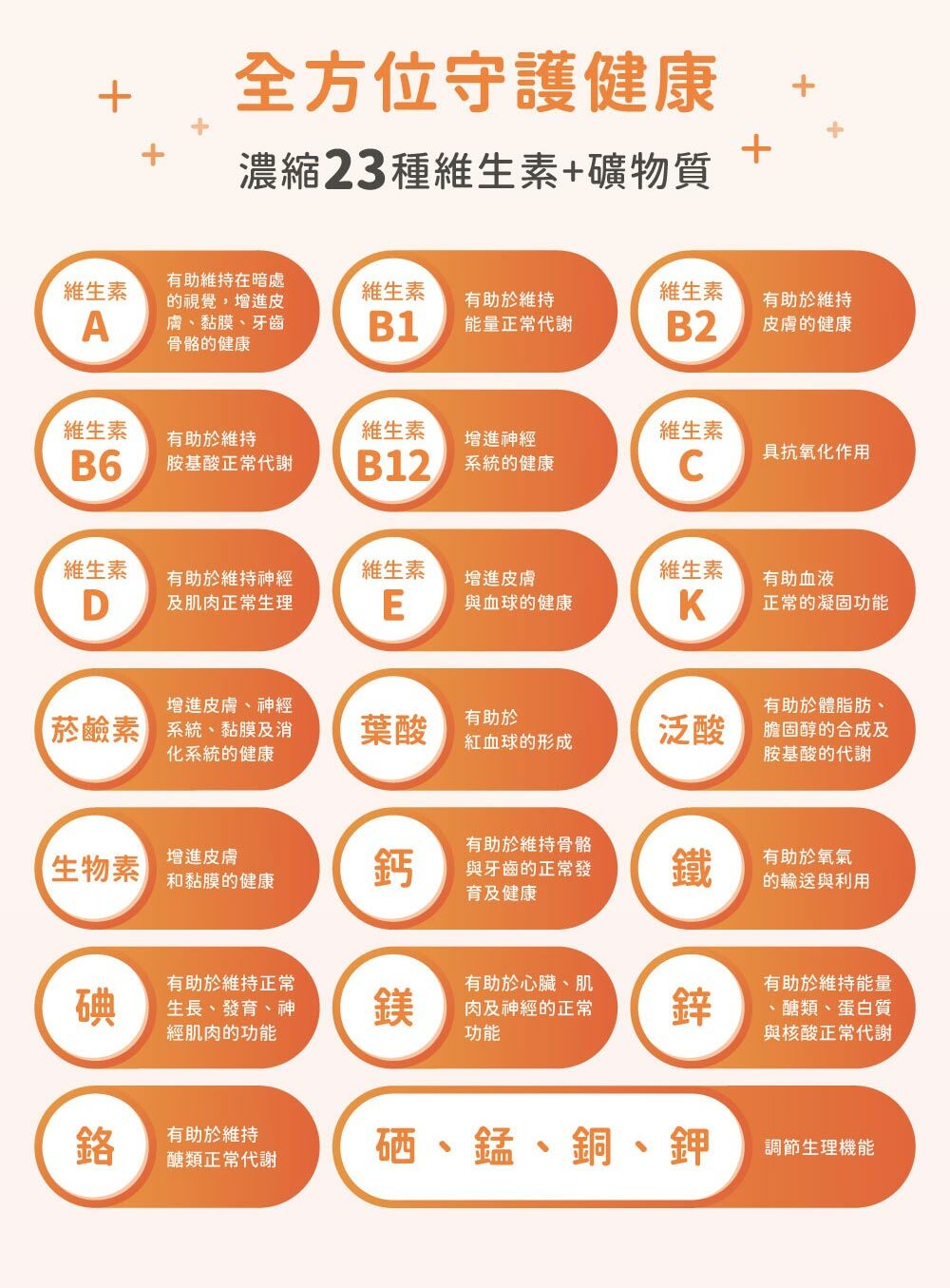 ⦁ 超頂規!高達23種營養素,每日關鍵攝取達100%