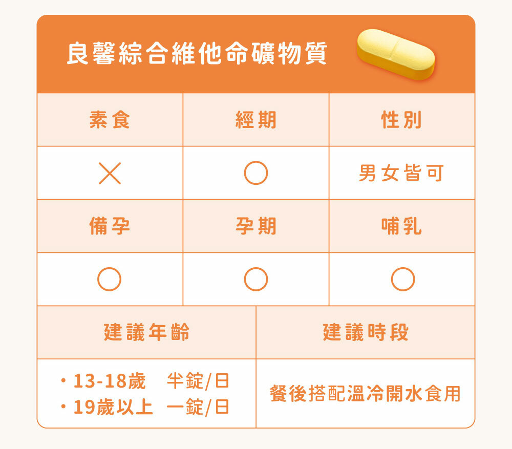 13-18歲建議每天半錠,19歲以上建議每天一錠