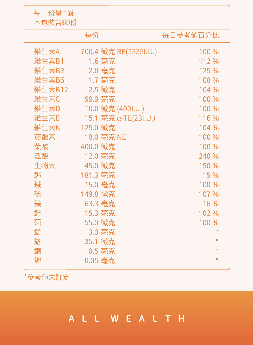 ⦁ 全方位黃金比例,攝取量均參考「國人膳食營養素參考攝取量」DRIs 所設計