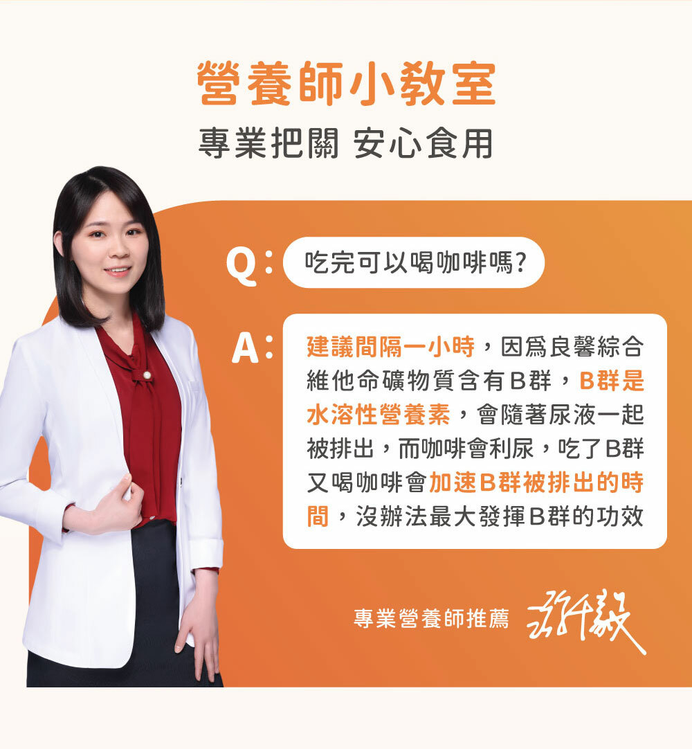 避免與咖啡、茶一起食用。建議間隔1小時食用。