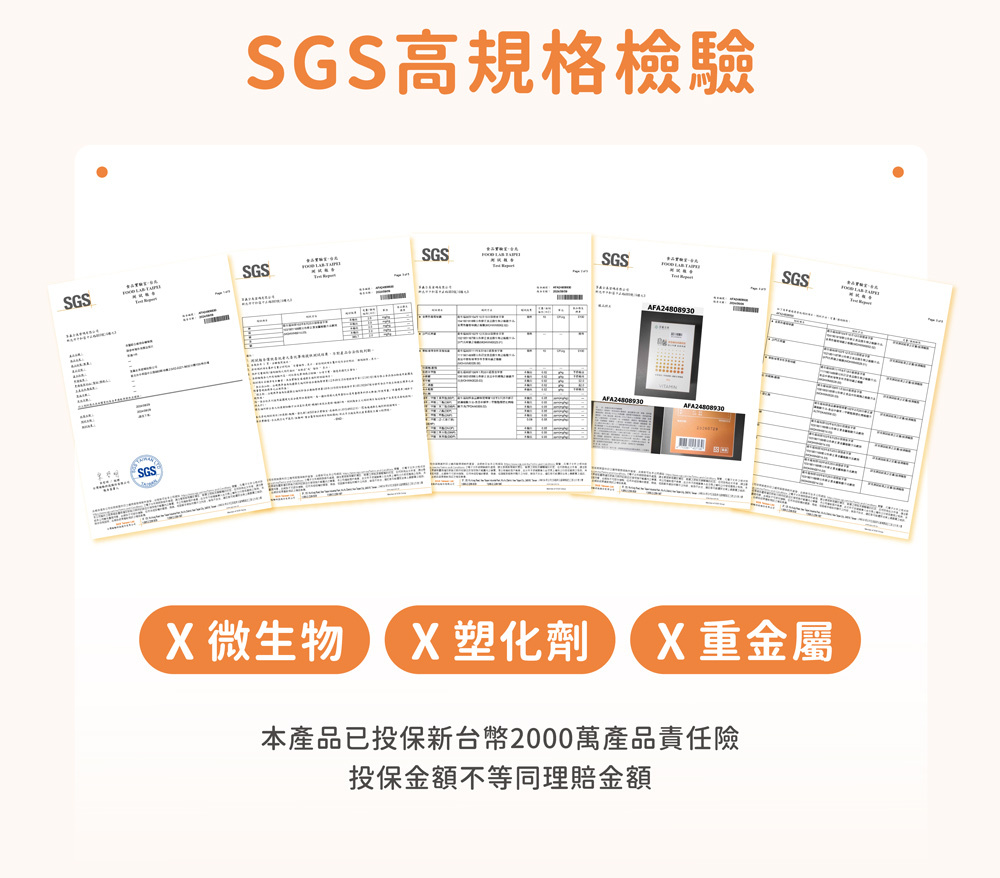 ⦁ 100%食品級,SGS微生物、塑化劑、重金屬等檢驗合格
