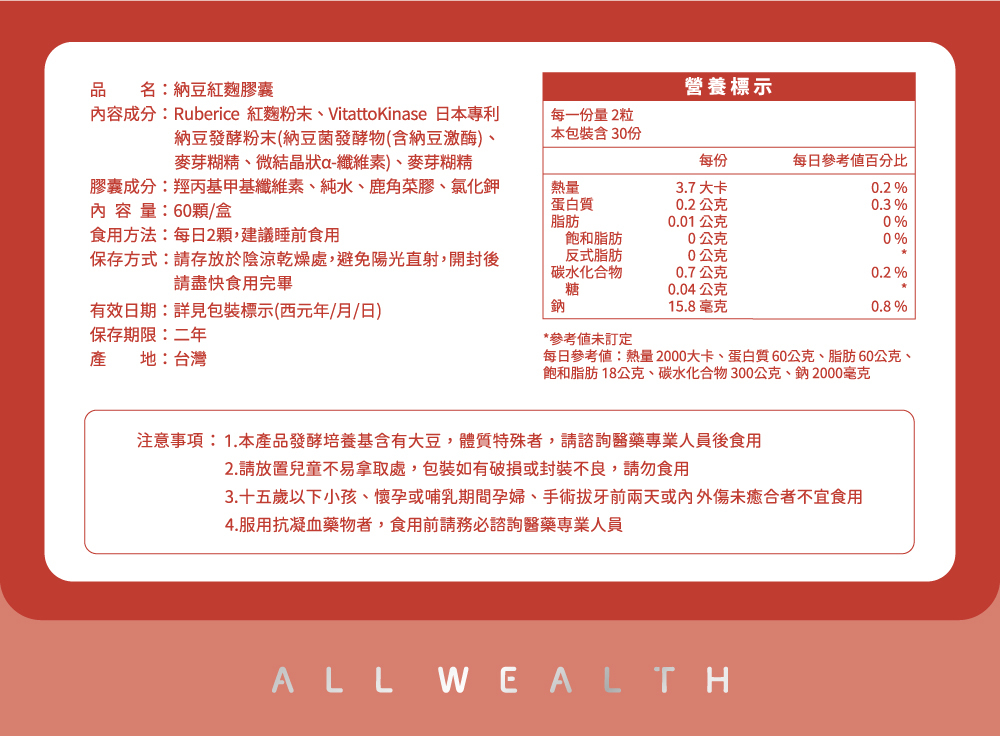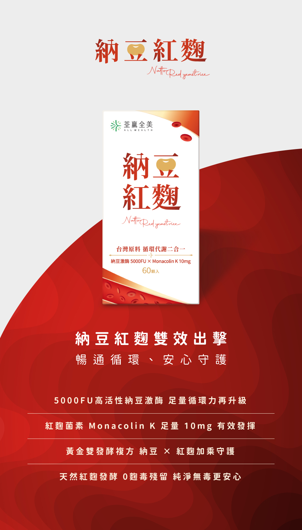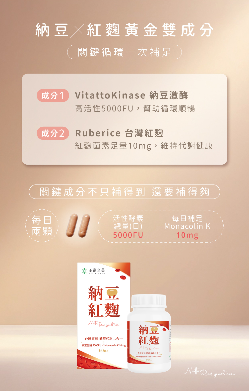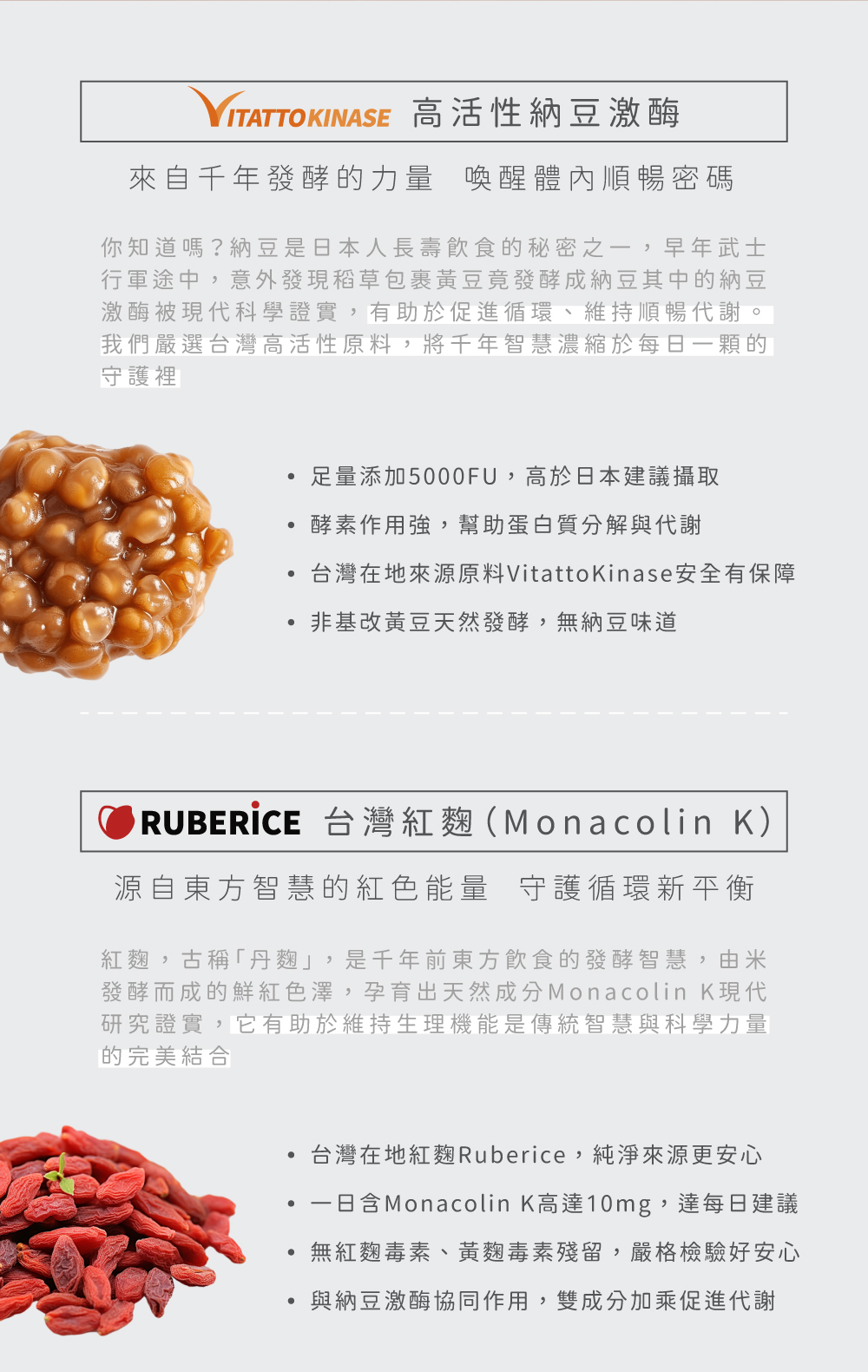 ⦁ 黃金雙發酵配方,納豆×紅麴,雙效合一守護健康​