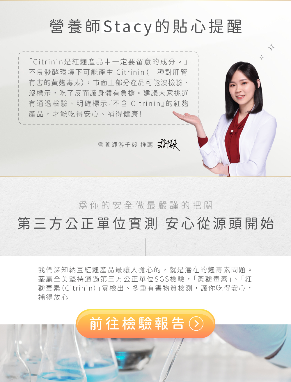 ⦁ 檢驗合格,無紅麴毒素、黃麴毒素殘留,純淨無毒更安心​