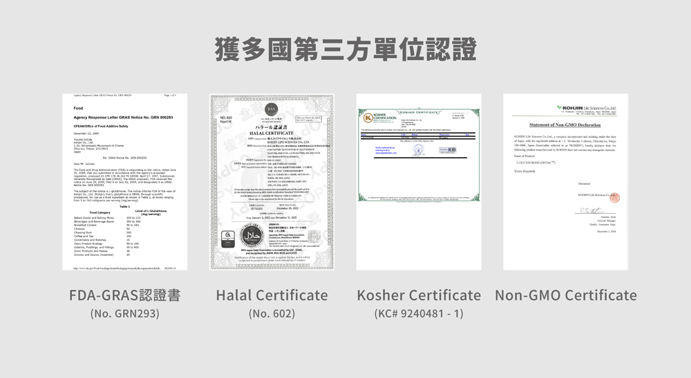 ⦁ 美國FDA-GRAS食品安全認證,多篇實驗研究