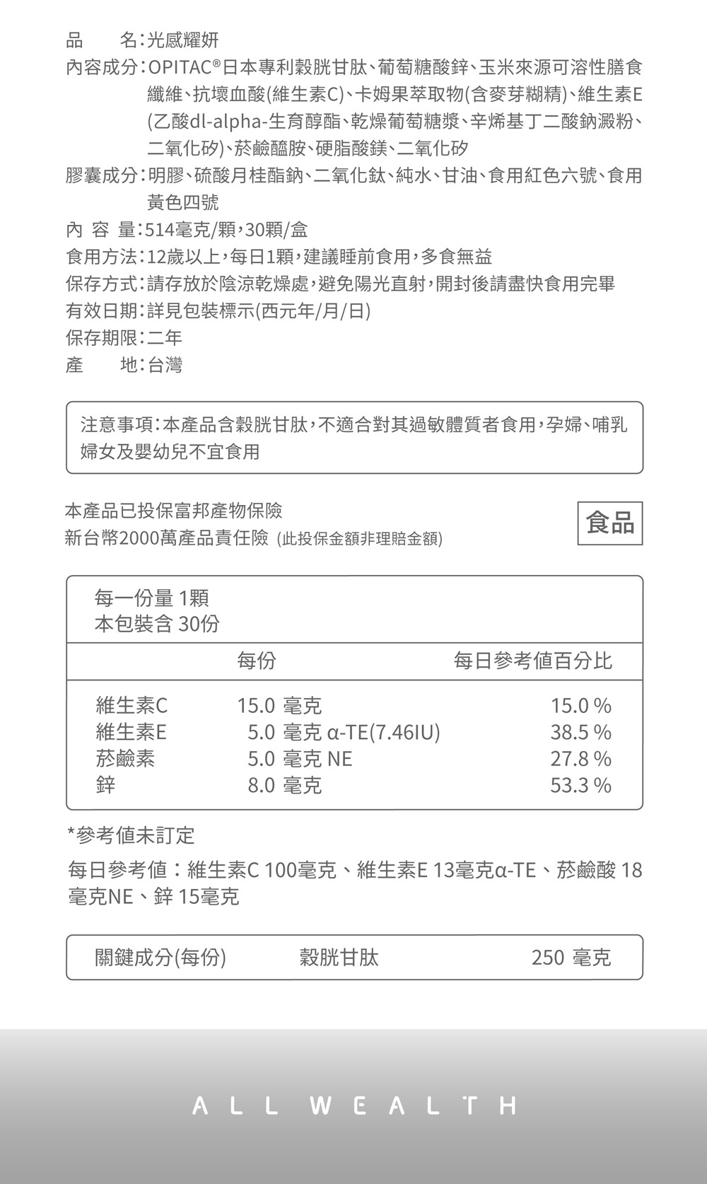 ⦁ 爆量規格 - 添加最高劑量 250mg 穀胱甘肽