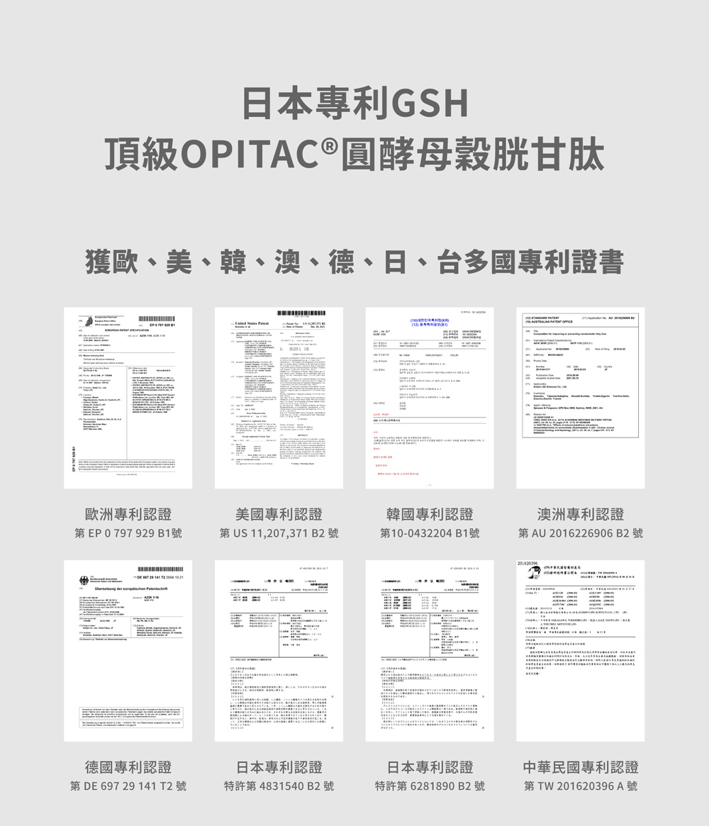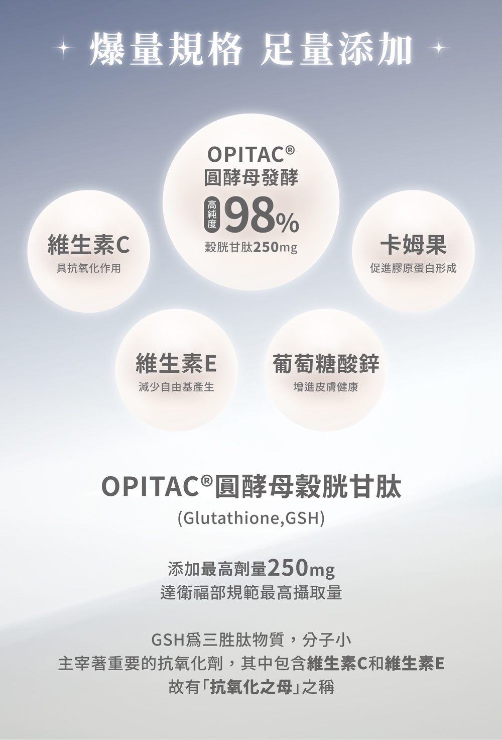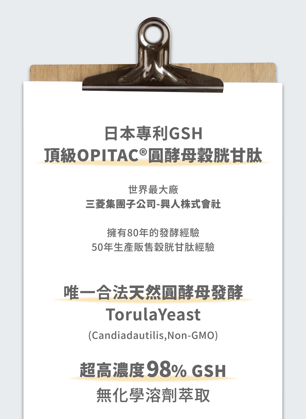 ⦁ 嚴選日本 OPITAC® 98% 高純度專利穀胱甘肽 GSH