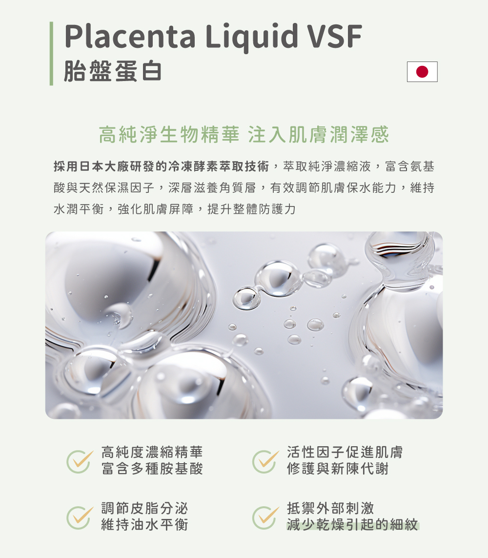 ⦁ Placenta Liquid VSF 胎盤蛋白,富含養分,提升肌膚彈性與光澤​