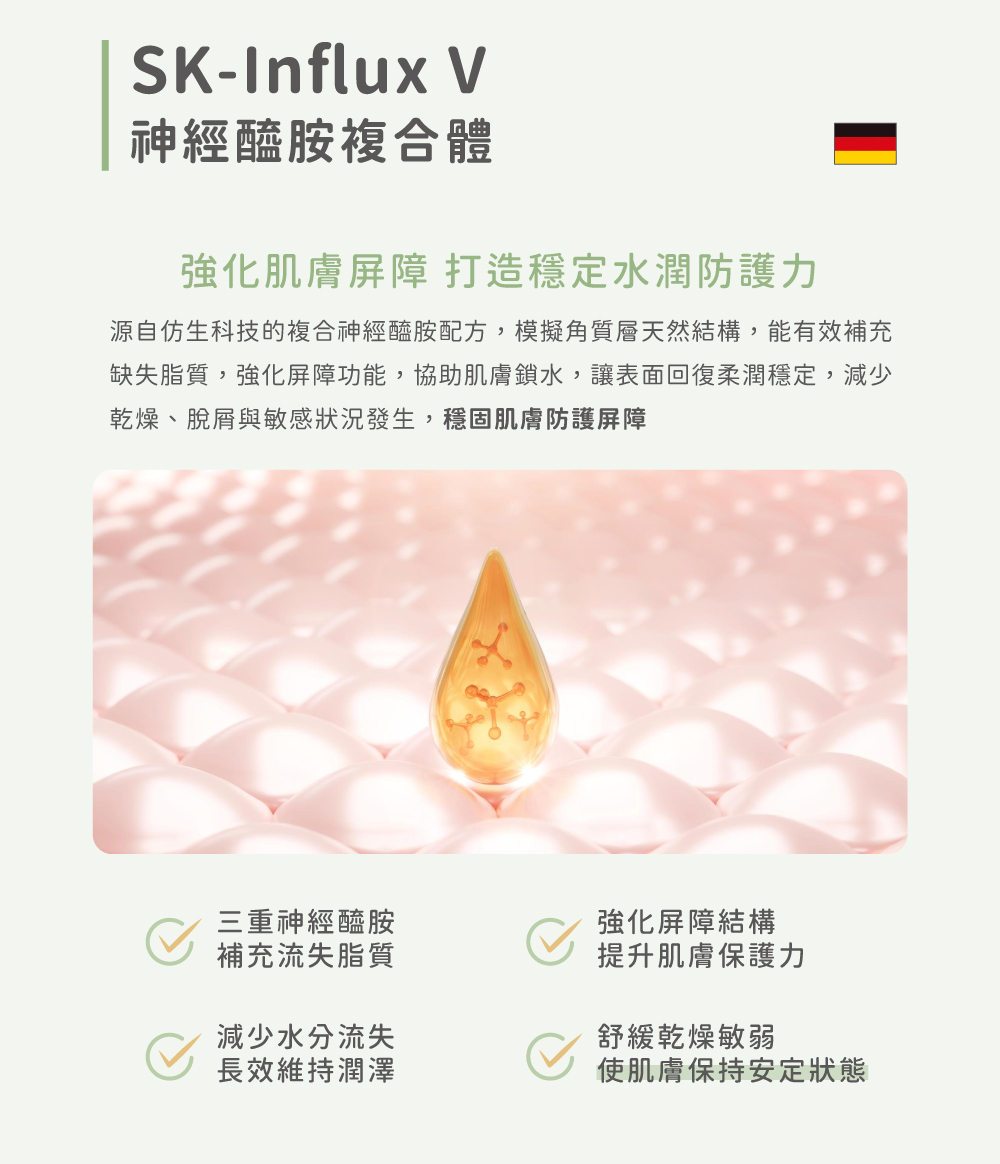⦁ SK-Influx V 神經醯胺複合體,重建肌膚屏障,打造穩固防護力​