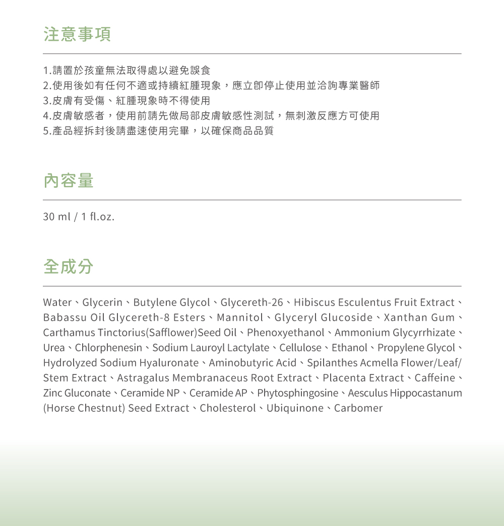⦁ 不含酒精、香精、人工色素及TFDA化粧品禁用物質