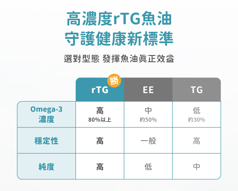 rTG型式魚油(Re-Esterified Triglyceride 再酯化三酸甘油酯型態) ​