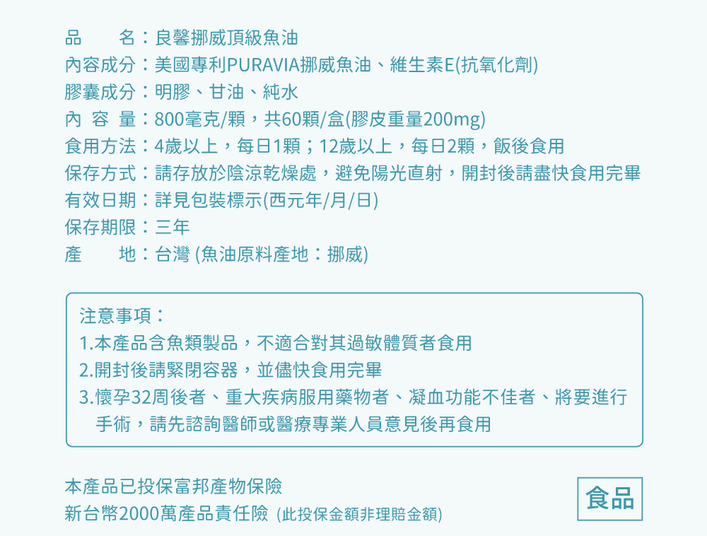 • 魚油產品含魚類及其製品,對魚類過敏者 ​