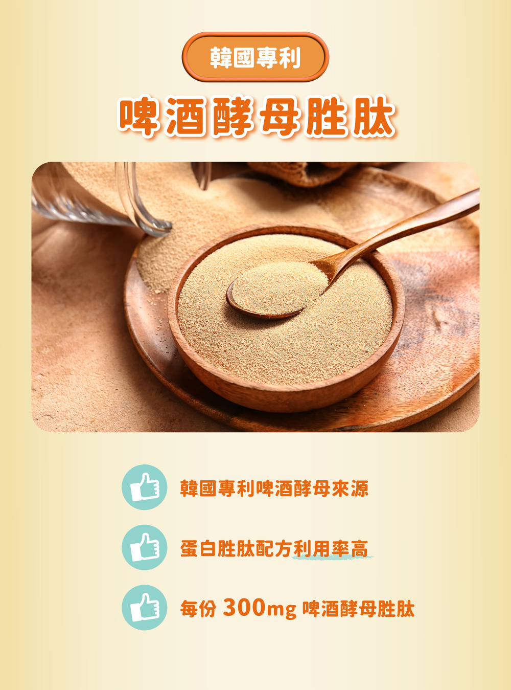 ⦁ 韓國專利啤酒酵母胜肽300毫克具特殊酵母結構