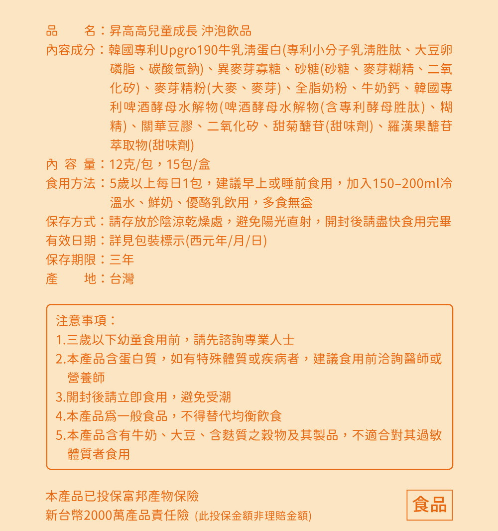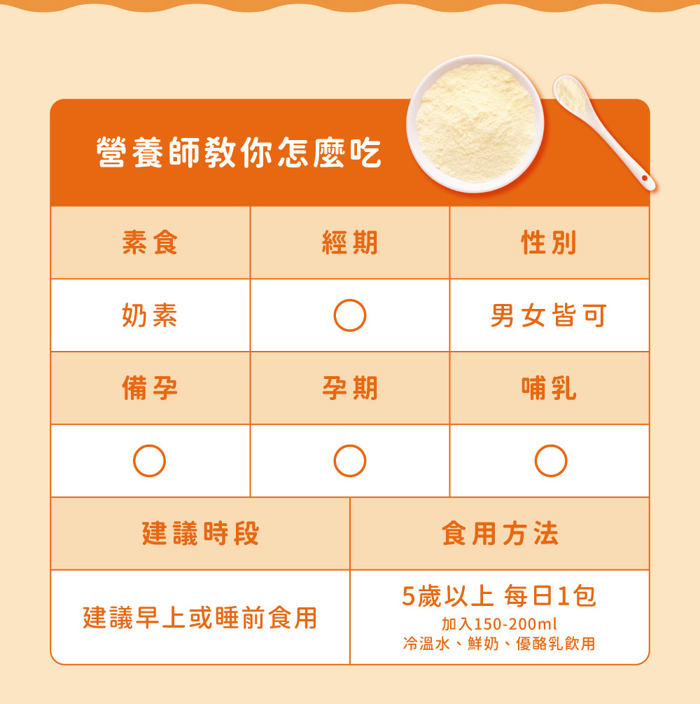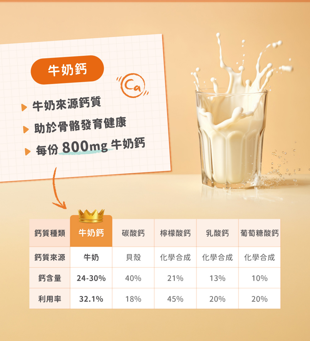 ⦁ 搭配牛奶鈣800毫克,助於骨骼正常發育