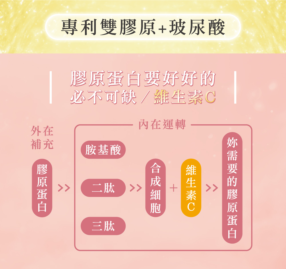 雙重膠原,雙倍美妍,一次補充兩種膠原蛋白