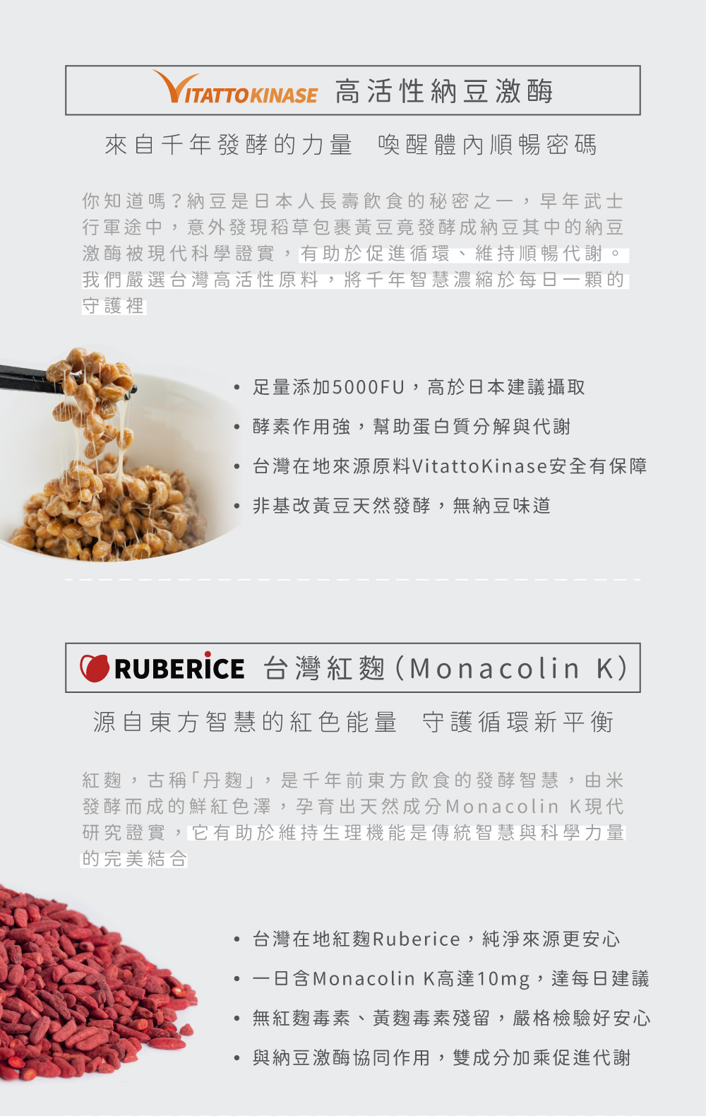 ⦁ 黃金雙發酵配方,納豆×紅麴,雙效合一守護健康