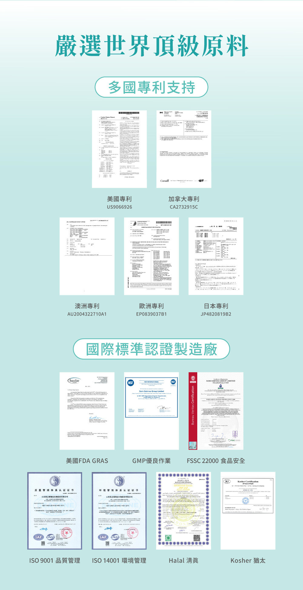 ⦁ 美國FDA-GRAS認證,美歐加日多國專利